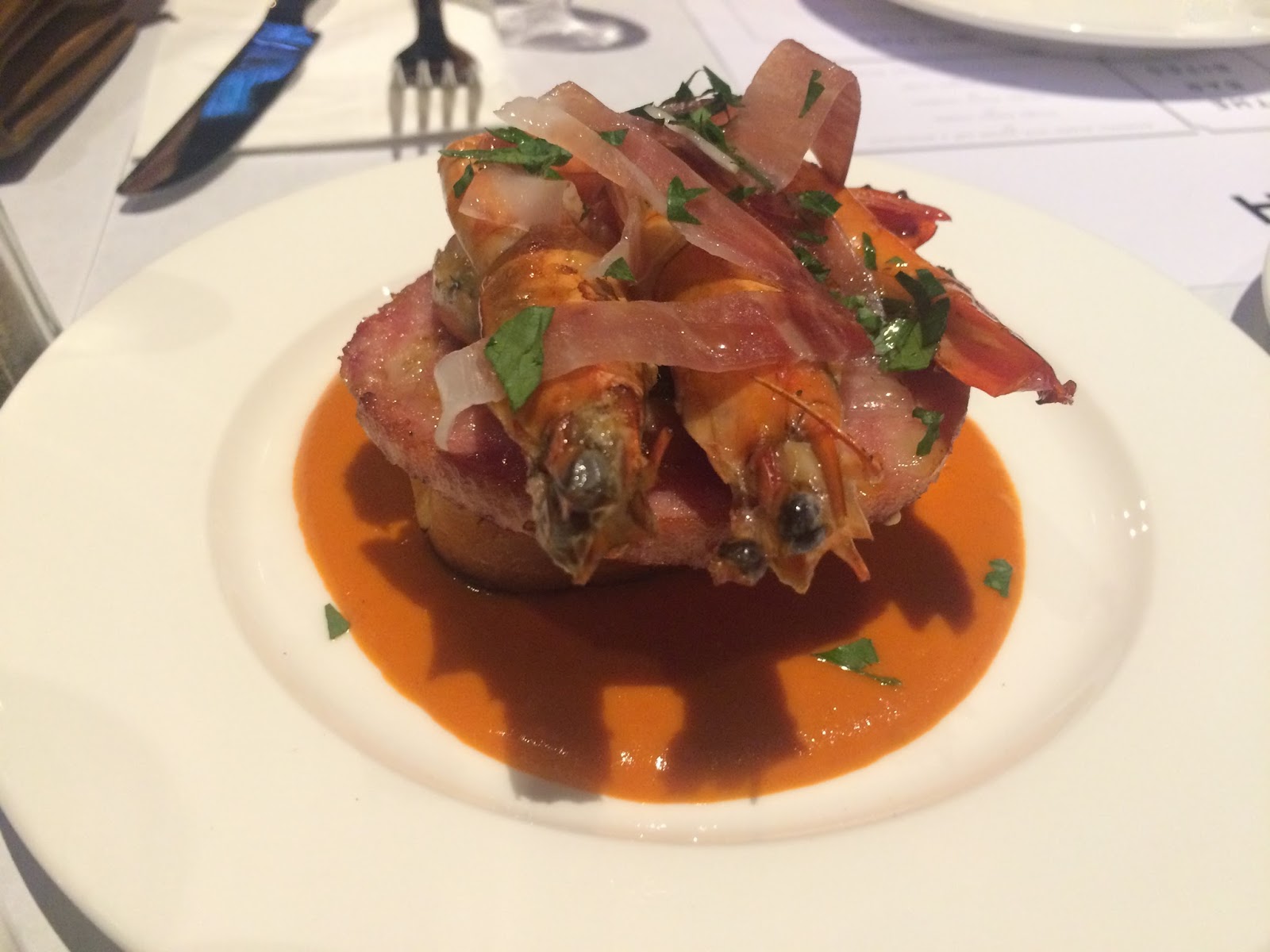 | Salmorejo Prawns Ham with glazed ham & prosciutto |